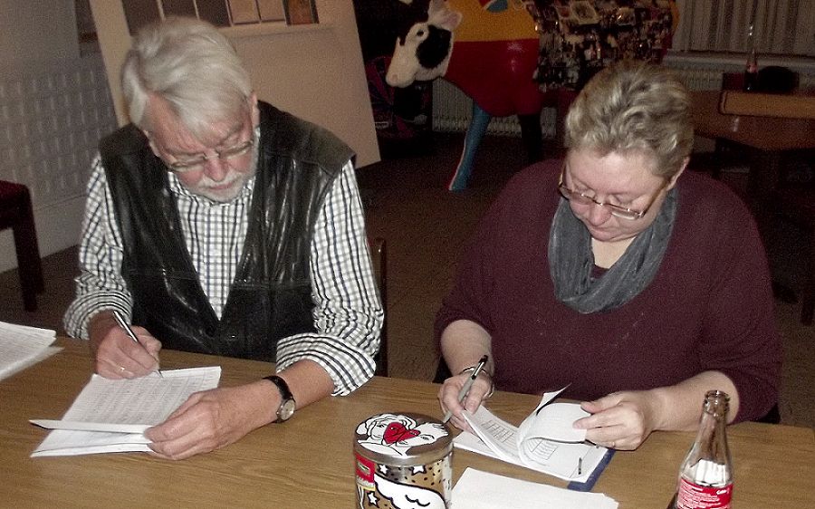 Peterlee-Schießen 2006: NWZ-Redakteur Henning Bielefeld, Karin Tönjes, Cliff Race, Audrey Horsfield und Jade Davies.