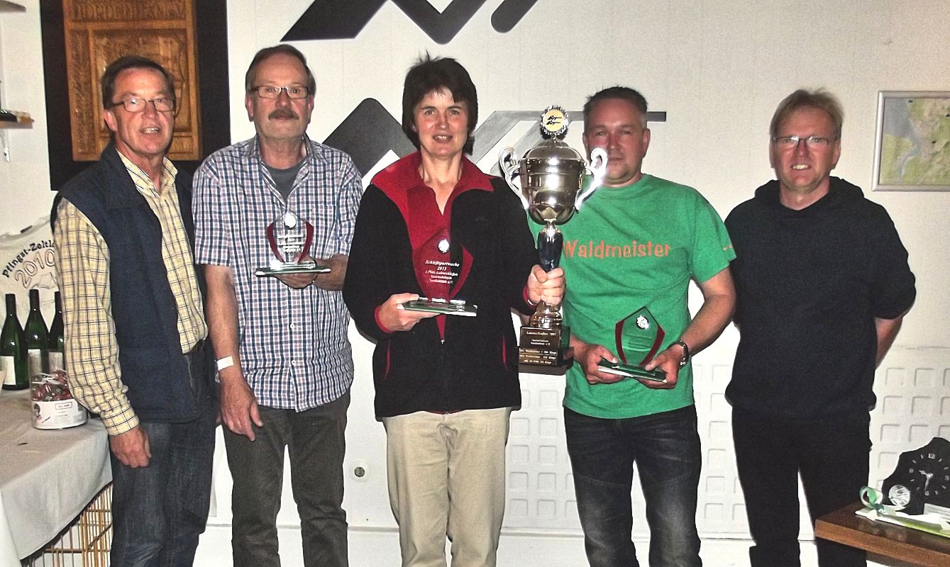 letzten Abend mit 220 Ringen den bisherigen Spitzenreiter „Sextett" mit 214 Ringen auf den 3. Platz. Sieger wurde, wieder einmal, die Gruppe „Die Waldmeister" mit tolllen 221 Ringen und sie erhielten den verdienten Wanderpokal aus der Hand der stv. Bürgermeisterin.