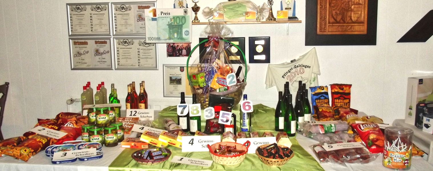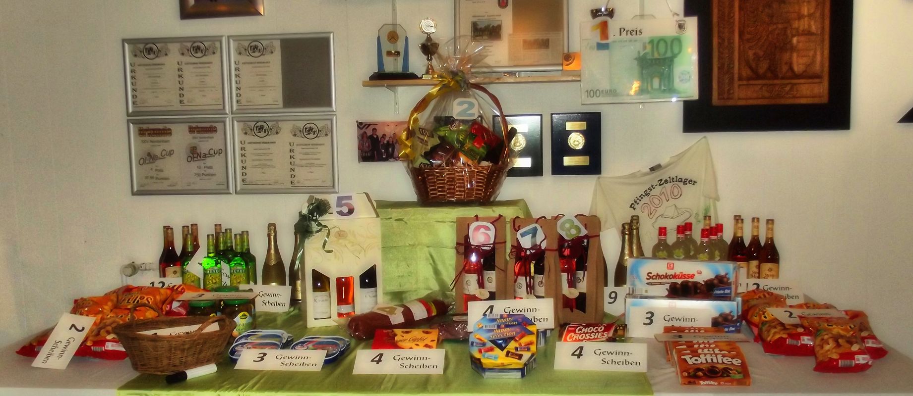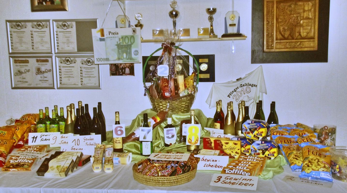 Von den acht Preisen wurden von den Anwesenden gleich sechs mitgenommen, übrig blieben die folgenden Preise, die unter Vorlage der Gewinnscheiben in den nächsten