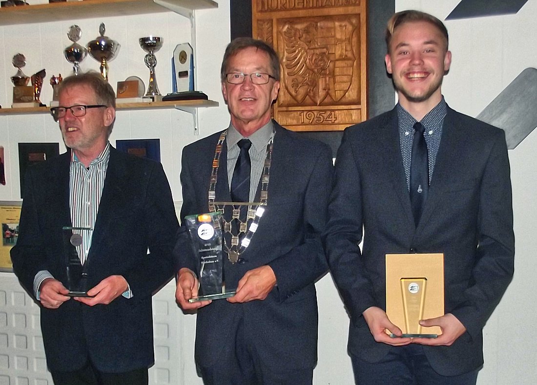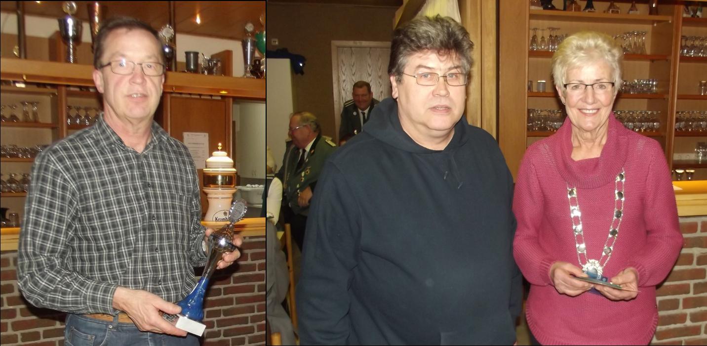 Ein weiteres Erfolgserlebnis hatten die aktiven Schützen. Sportwart Gerd Lange konnte für den Erfolg der RWK-Mannschaft Senioren LG-Auflage, 1. Kreisklasse den verdienten Siegespokal aus den Händen von Rundenwettkampfleiter Hergen Heinemann entgegennehmen. Zur Mannschaft gehörten neben ihm auch Rainer Wittkowsky und Hartmut Riesebieter.