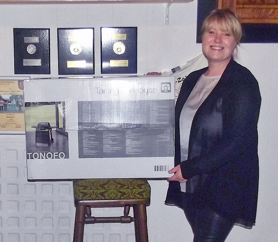 Schon am Dienstag war die glückliche Gewinnerin dabei mit der richtigen Gewinn-Nummer (120). Am 30.06. holte SANDRA WIECHMANN vom SV Geestenseth ihren Gewinn ab und brachte ihn auf