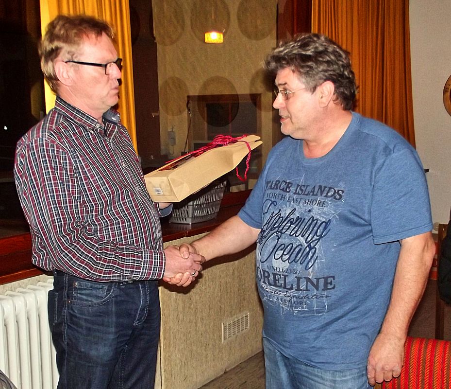 der der Sportwart Gerd Lange außer der Ehrennadel für 50 Jahre im Verein auch einen großen Präsentkorb erhielt.