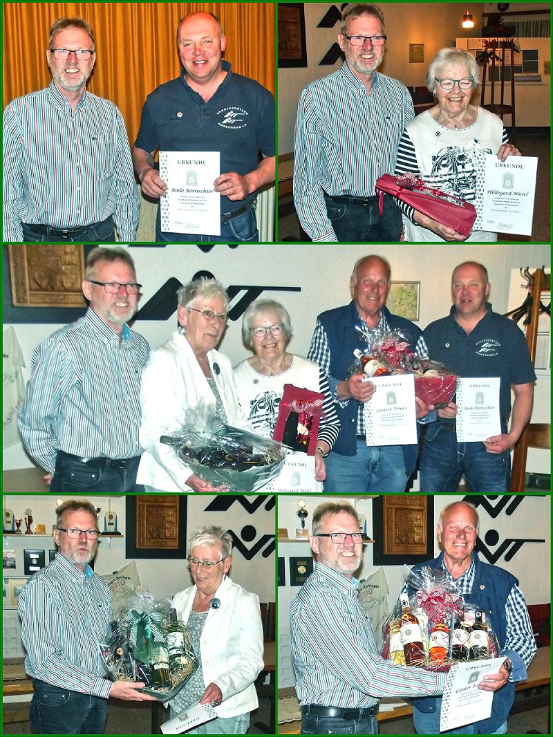 Unter Punkt 5 der Tagesordnung der Jahreshauptversammlung ehrte der Vorsitzende Rolf Hecken treue Mitglieder. Seit 25 Jahren gehören Bodo Bornschier und Hildegard Niesel dem Verein an. Heide Hildebrand ist 50 und Günter Tönjes sogar schon 60 Jahre dabei.